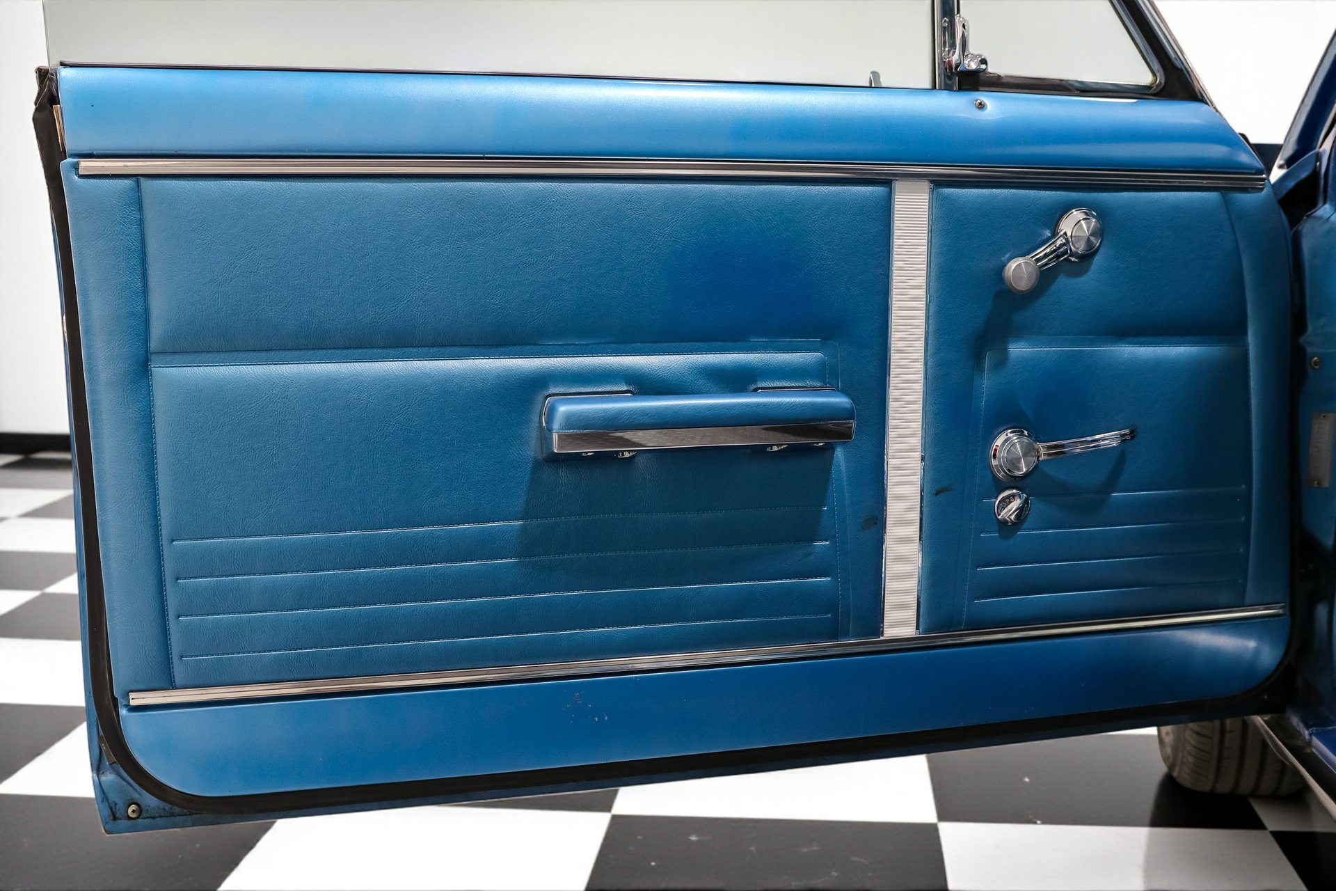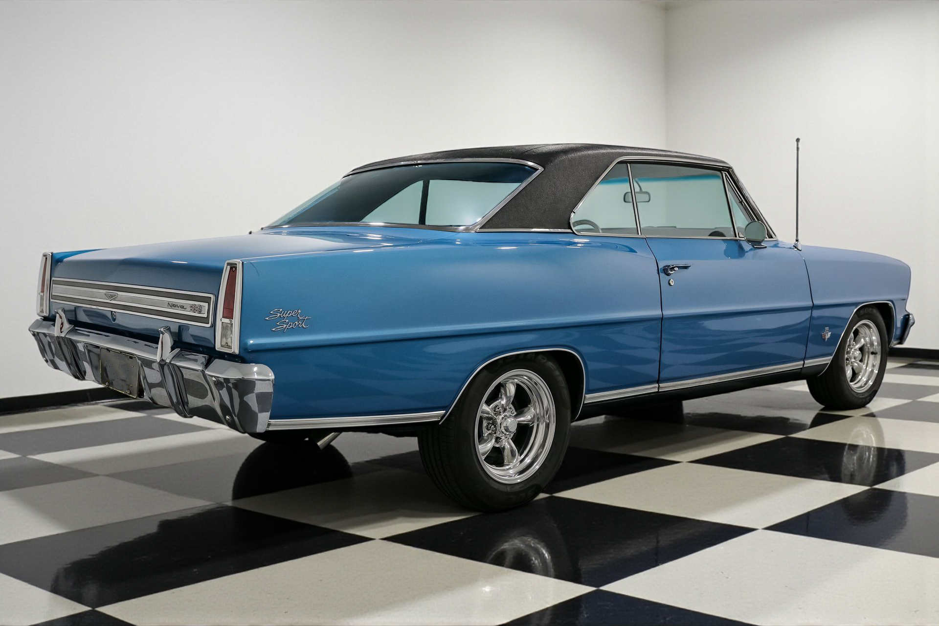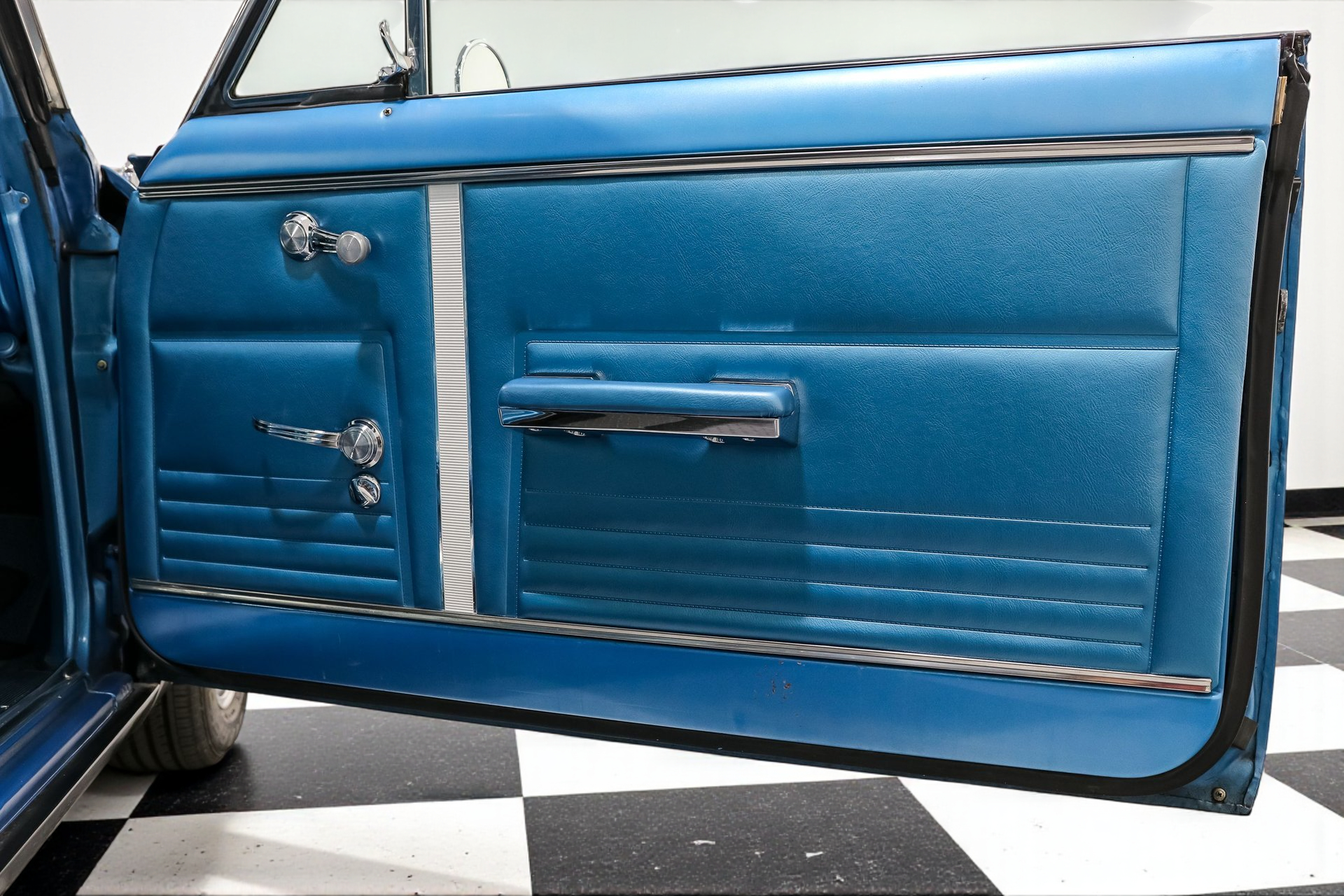 A true classic, this Nova SS is powered by a 283CI V8 engine coupled with a smooth 2-speed Powerglide automatic transmission, offering a perfect blend of vintage charm and performance. The striking Marina Blue exterior is complemented by a deluxe blue vinyl interior, showcasing the car's authentic and well-maintained condition.