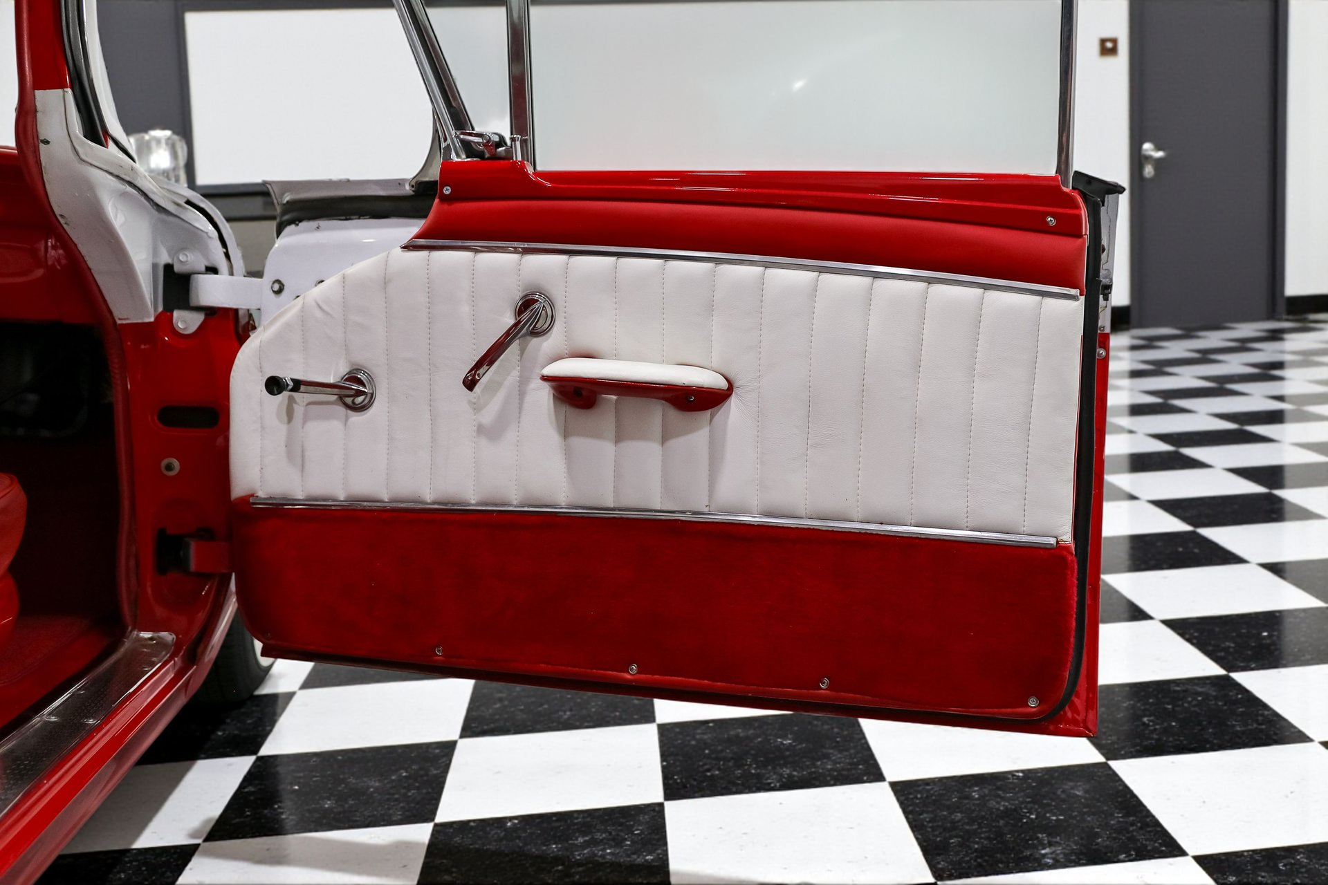 Inside, the Red and White vinyl bench seat offers a spacious and comfortable ride, perfect for cruising in style. The two-tone interior is a nod to the era's design aesthetics, while modern touches like an aftermarket radio and an electronic wiper conversion provide contemporary convenience. The 12V conversion ensures reliable electrical performance, bringing this classic up to modern standards.