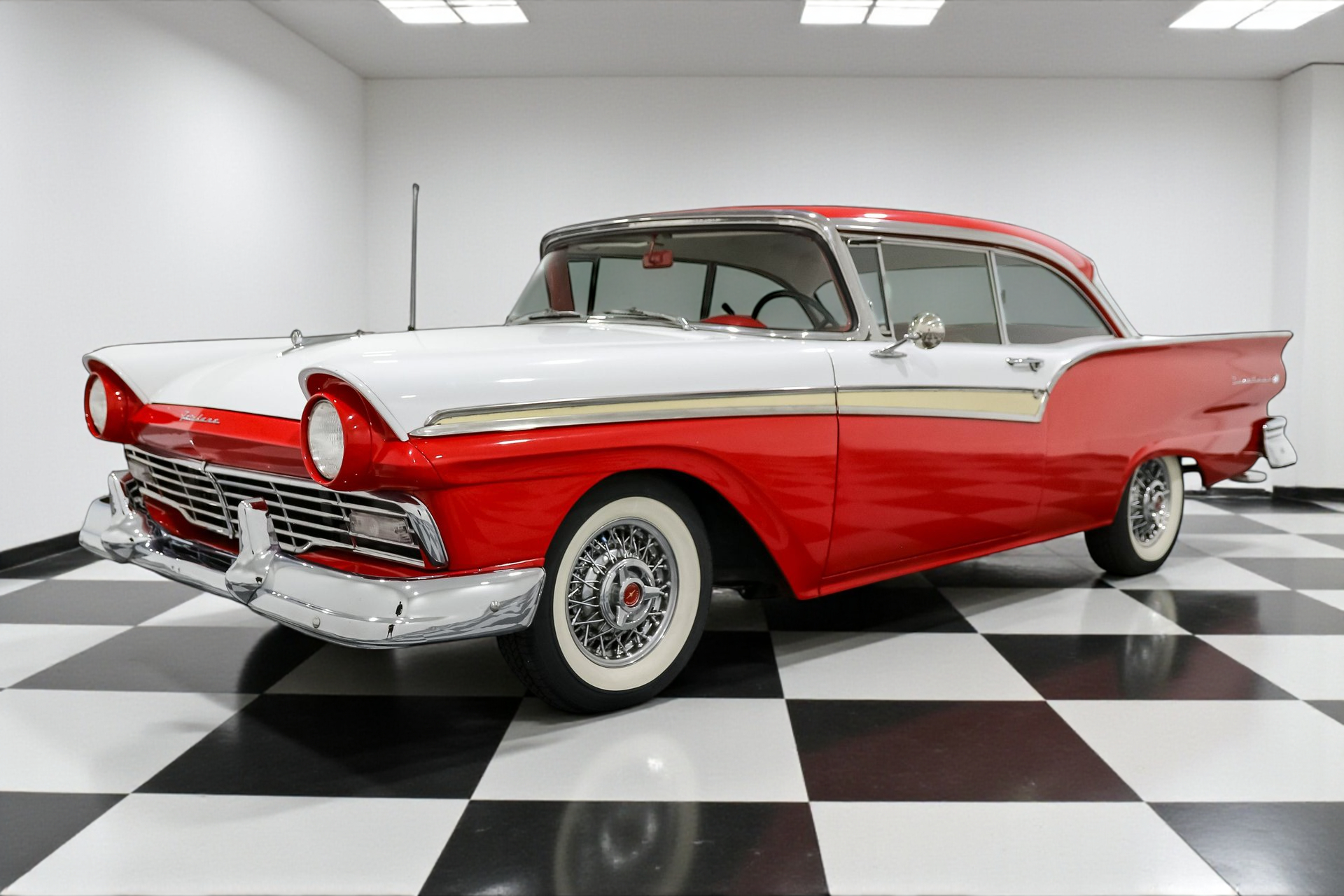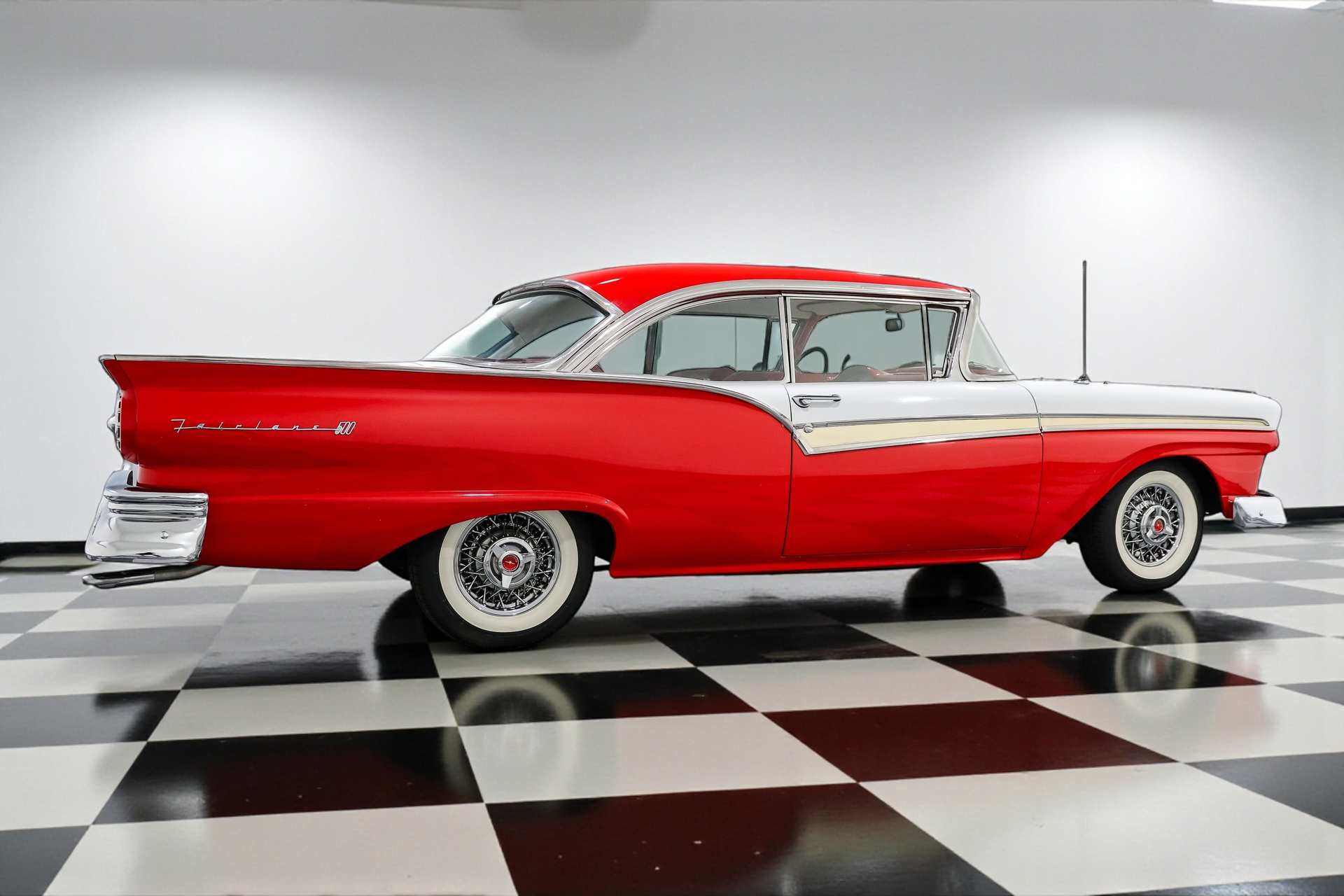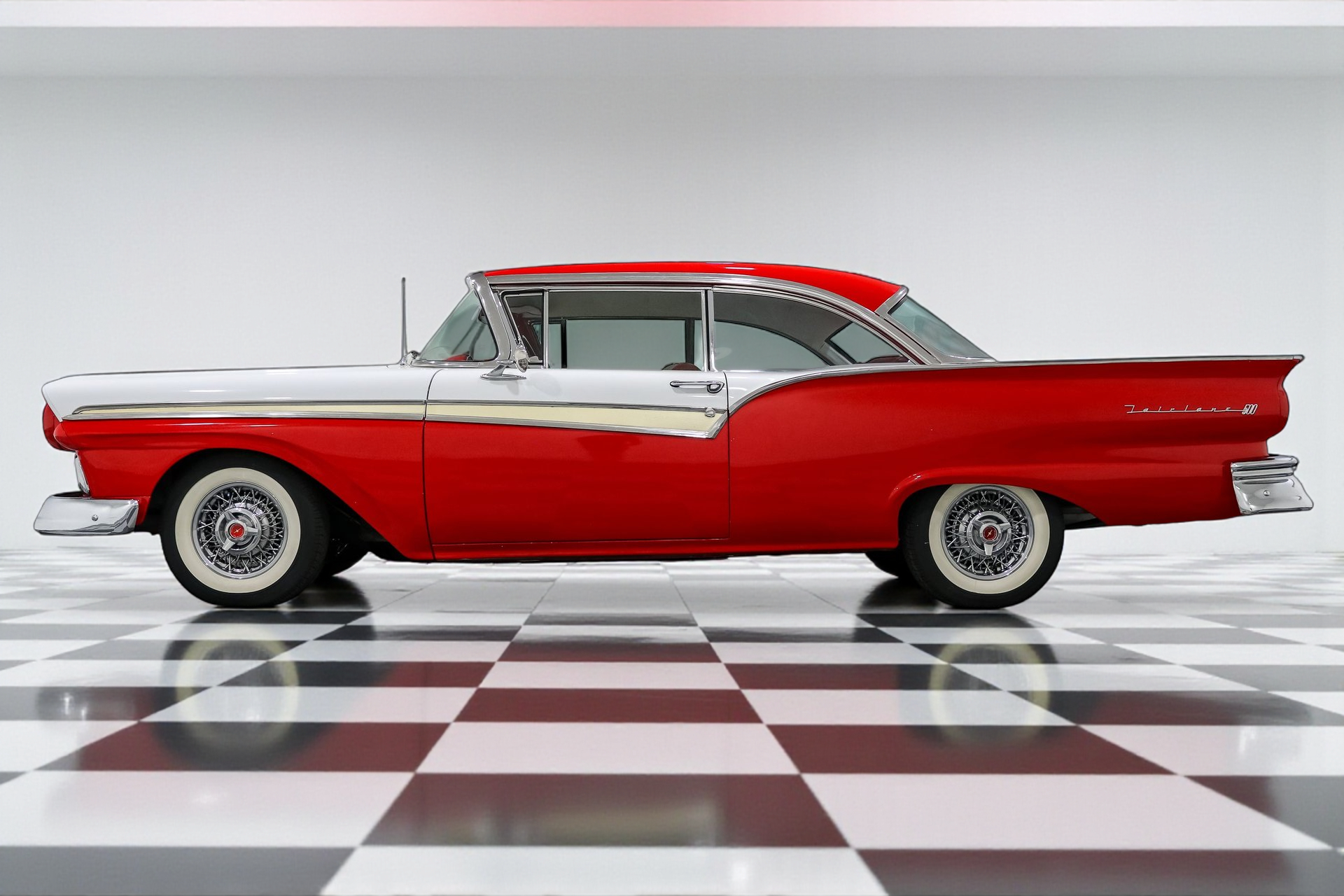 Step into the golden era of American motoring with this stunning 1957 Ford Fairlane, a perfect blend of vintage style and modern performance upgrades. This classic coupe, resplendent in a vivid Red exterior and a striking Red and White two-tone interior, is a true icon of the 1950s. Under the hood lies a robust 312 V8 engine paired with a Fordomatic 2-speed automatic transmission, promising a smooth and powerful driving experience..
