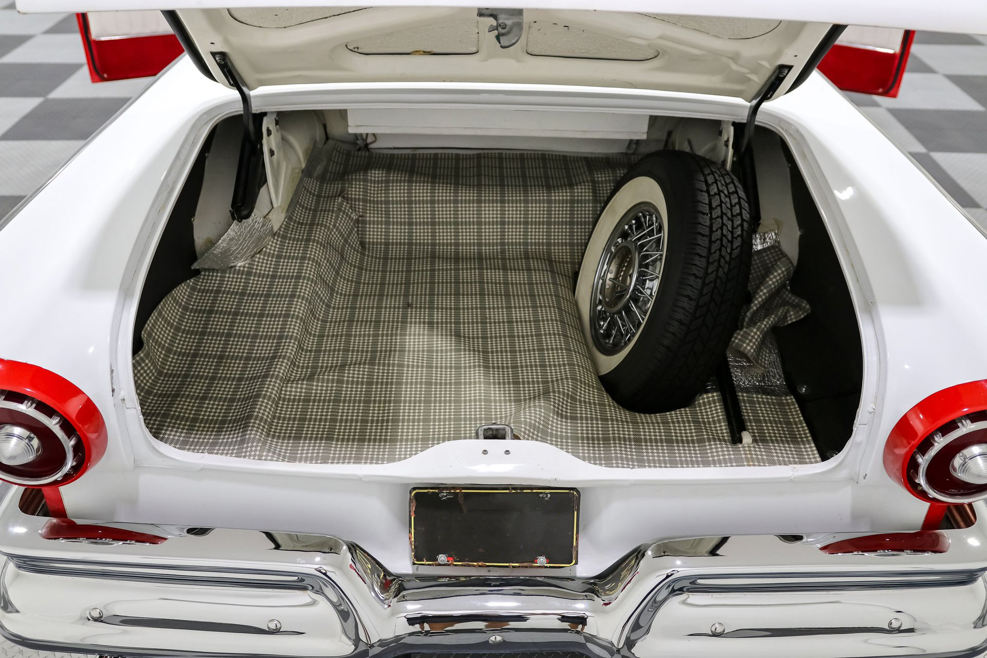 The 1957 Ford Fairlane is celebrated for its sleek design and reliable performance, and this example is no exception. Equipped with Thunderbird aluminum finned valve covers and a Holley carburetor, this Fairlane not only looks great but performs exceptionally well. The dual exhaust system provides a rich, throaty growl, while the power steering and power brakes, including front disc brakes, ensure modern driving convenience and safety. Wide white tires on Thunderbird true spoke wheels complete the vintage look, making this Fairlane a showstopper on any road.