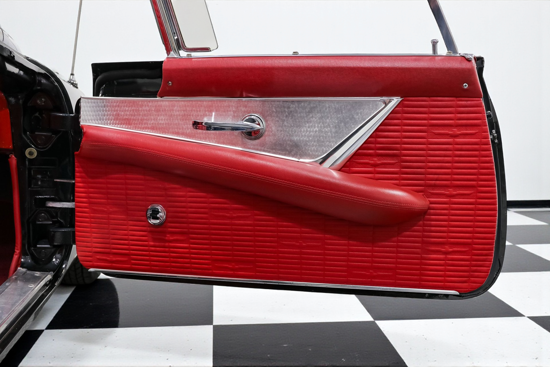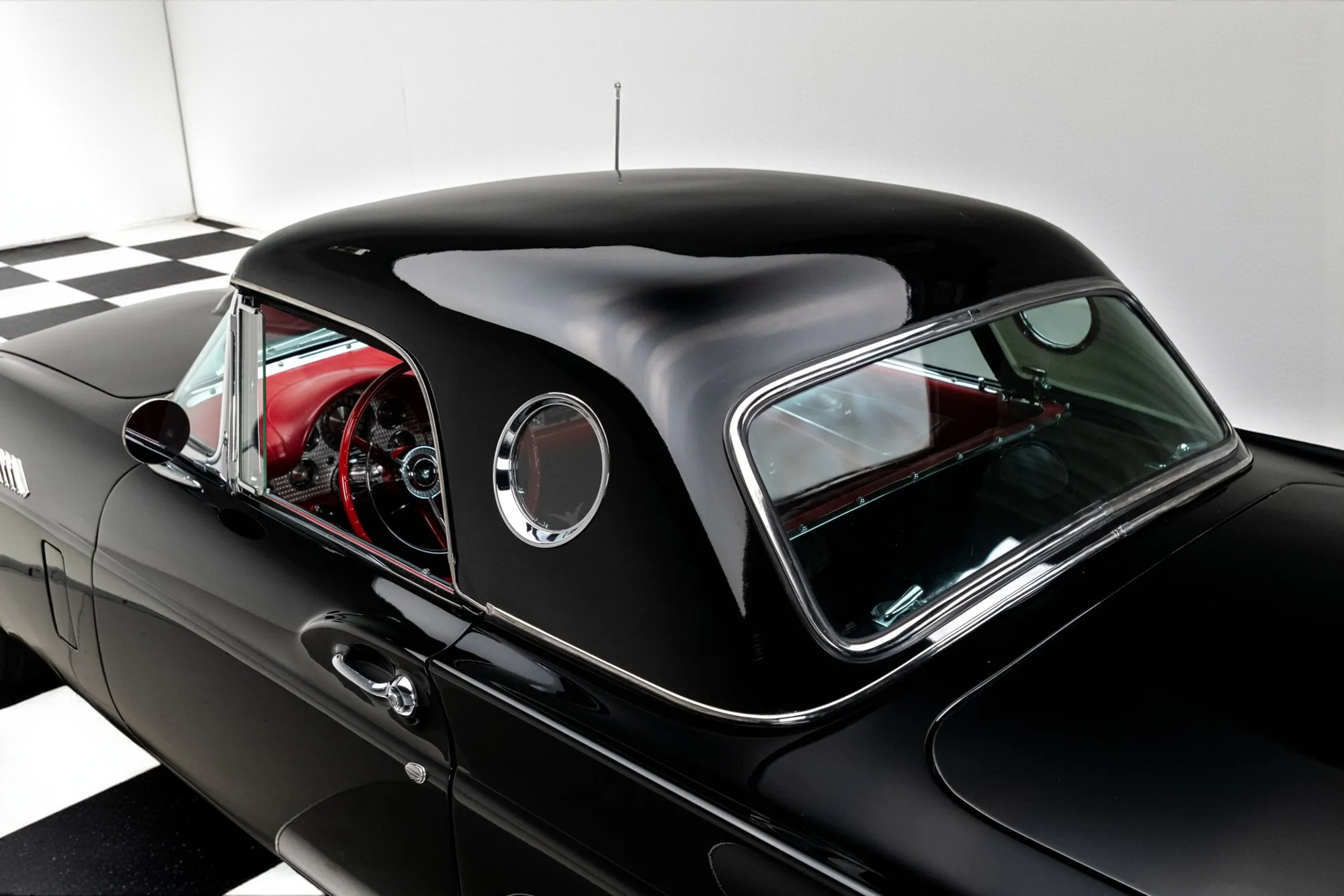 Dressed to impress in sleek black paired with a vibrant red interior, this Thunderbird captures the spirit of its era perfectly, blending iconic design with the thrill of open-air driving.